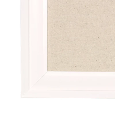Organize your home or office with this decorative and functional framed linen fabric pinboard. This decorative wall mounted memo board has a soft white linen fabric padded pinboard. Metal d-ring hangers are already attached to the back of the frame for either horizontal or vertical display to fit your needs. The outer display dimensions are 18.5 inches by 27.5 inches by 1 inch deep. The fabric pinboard measures 14.5 inches by 23.5 inches. Use this framed bulletin board for maximum organization in your entry way, kitchen, or home office.