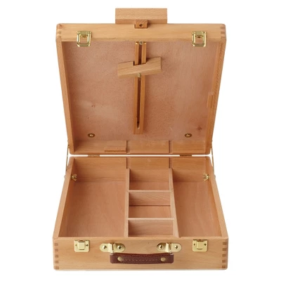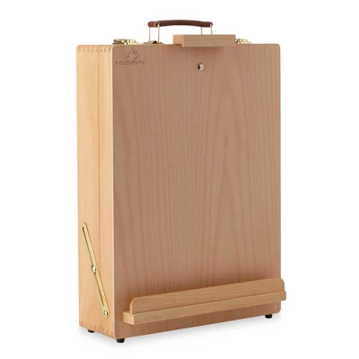 The 7 Elements wooden portable sketchbox easel with built-in storage drawer is great for both beginners or advanced artists who want to paint both on location & outdoors, while working with small to medium size canvases. Holds a canvas up to 27″ high. Crafted from high quality solid Beechwood, this sturdy easel with metal clasps and fasteners, rounded solid box joints and integrated rubber feet is designed to stand up to hours of artistic enjoyment. Features four large compartments with three removable dividers, allowing adjustment of section sizes to keep yourself and tools organized while painting, drawing and sketching. Holds sketch pads, paints, brushes, markers, pens and other essential art supplies secure with two locking clasps. Durable leatherette carry handle lets you pick up and carry wherever you go. Overall Dimensions: 17-3/4″ Length x 13″ Width x 33″ High. Folded Dimensions: 17-3/4″ Length x 13″ Width x 5.5″ High