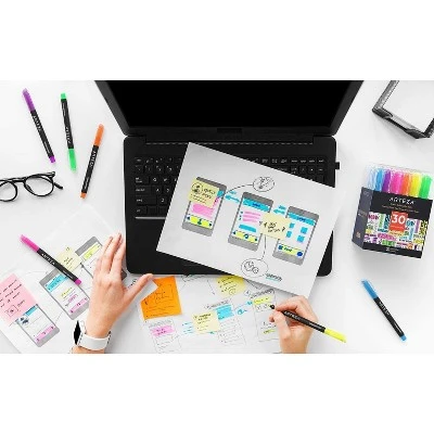 Having a reliable bulk set of highlighters makes your work, school, and home life easier. This set of 30 highlighters with narrow chisel tips comes in 6 colors: blue, purple, pink, orange, yellow, and green. With a wide range of neon highlighter colors to choose from to color coordinate your notes, create colorful illustrations, or emphasize text. The narrow chisel tips encourage you to make meaningful marks to differentiate important information. The quick-drying ink won’t smudge or smear; making this set of 30 ideal for left-handed writers.