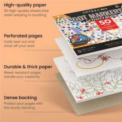 - High Quality Paper – 50 hiqh-quality sheets that won’t bleed, and have an easy to tear away perforated line