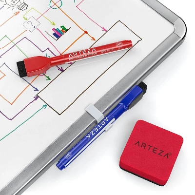 Arteza Premium Framed White Magnetic Dry Erase Lapboards Set with 2 Boards (11″x14″), 16 Markers with Cap Erasers, and Magnets (ARTZ-8951): No Waste, Portable Dry Erase Boards – Take your small magnetic whiteboard to the couch, car, office or classroom to take notes, meal plan, track chores while reducing paper waste. Simple Storage & Easy Access – Markers come with magnetic eraser caps that allow you to store the pens right on the board; set also includes magnetic erasers, pen holders & magnets to hold notes. Versatile Hanging Options – Includes strong and durable mounting magnets, 8 per board, or for non-metallic surfaces, the double-sided tapes allow you to easily set up these boards on walls, horizontally or vertically. Fine Tipped Dry Erase Markers – 16 pens in 8 colors for better brainstorming clarity, organization, and creativity. Arteza makes art supplies affordable to creators with every budget.