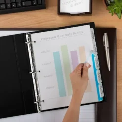 - Get a professional, printed-on look with clear labels that virtually disappear on the white divider tabs. Dimensions: 8.5″W x 11″L. Durable frosted plastic dividers wipe clean with most non-abrasive cleaners and tear resistant material is sturdy enough to endure frequent use.