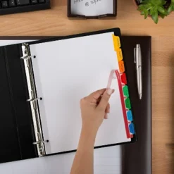 - Find binder sections easily with white tabbed dividers featuring brightly colored tabs perfect for color coding and quick referencing. Great for organizing your medical document binder, meeting materials, proposals, tax organizer binder, financial planner and more. Eight staggered tabs for convenience and easy-to-see labels. Dividers made of 20% post-consumer materials for an eco-friendly option. Apply the labels to all divider tabs at once—great for large projects.