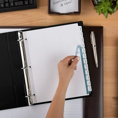 - Get a professional, printed-on look with clear labels that virtually disappear on the white divider tabs. Dimensions: 8.5″W x 11″L.