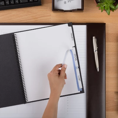 - Get a professional, printed-on look with clear labels that virtually disappear on the white divider tabs. Dimensions: 8.5″W x 11″L.
