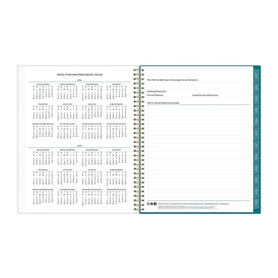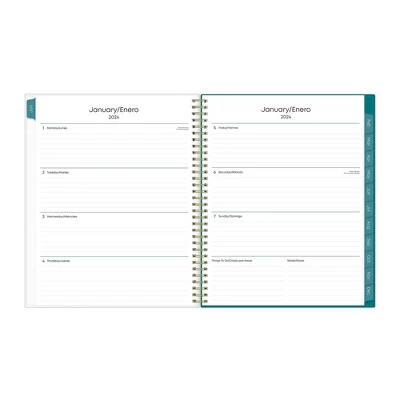 Perfect for language students and teachers, the 2024 Spanish Planner from Blue Sky is written in Latin American Spanish and English and includes Latin American and American holidays. Enjoy plenty of room for notes, lined weekly views, and tabbed monthly calendars to help you stay focused throughout the year. With dedicated pages for your contacts, goals, and important dates, the Blue Sky Spanish Planner is the perfect way to organize your schedule.