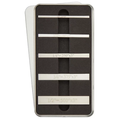 This 5 pack gauge block set is the perfect addition to your table saw accessories. The set includes 5 different square-size precision blocks for precision layout, setting up machinery, or producing fixtures. Keep the stainless steel blocks at home for any woodworking project or use them in any professional or industrial setting while metalworking and for machinery setup maintenance or repair. The 5 precision blocks are 2-1/2 inches long and are 5 different square sizes: 1/8 inch, 3/16 inch, 1/4 inch, 3/8 inch, and 1/2 inch.