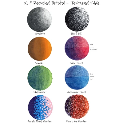 CANSON-XL Recycled Bristol Pad. This paper pad features two distinct bright white surfaces: one smooth and one textured. Bristol board accepts many types of media. This package contains one 12×9 inch recycled Bristol pad with twenty-five double-sided sheets. Acid free. Made in USA.
