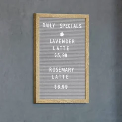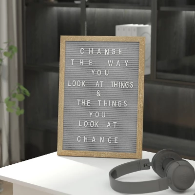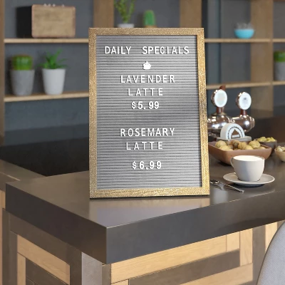 Announce special news or display meaningful quotes anywhere in your home with this 10 x 10 wood framed felt letter board that includes 389 precut letters including symbols, numbers and icons. Whether you need a reminder of what you’re working for in your home office or want to let the world know about an exciting life event, the up-market look of this message board will be a stylish addition to any room. Handcrafted from solid pine wood with multiple finishes and felt colors available, you’re sure to find a combination that fits your personal style. Hang this all occasion board on the wall with the included saw tooth hanger or sit it on a shelf or table with the easel feature. No product assembly is required and a damp cloth keeps your new board free of dirt and dust.