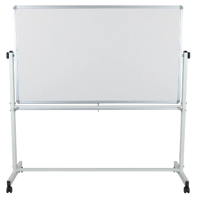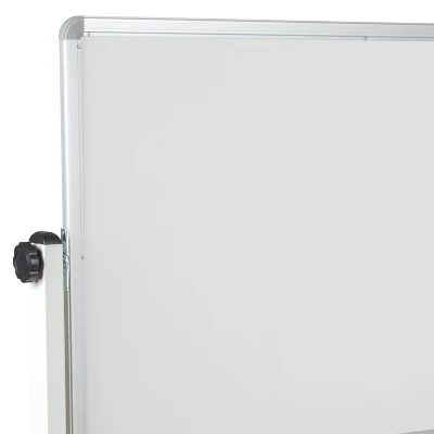 Keep up with the daily demands of your classroom with a multipurpose mobile board. This convenient freestanding cork board can be placed near the front of the classroom for pupils to get the latest school news or obtain classroom information before the start of class. Once you’re ready to start your session, roll to the center of the room, flip and use the dry erase side for lessons. Interact with colleagues and clients with the aid of a reversible cork board and whiteboard. Write out your plans, ideas and budgets on the dry erase side, flip over to display outlines and blueprints. The mobile board will allow you to roll the board around the conference room or keep it centered at the front of the table for a clear view around the room. The combo rolling board offer some great features: – Magnetic dry erase surface to hang up documents – – Includes 6 magnets – – Spring clip secures board while in use; pull down to activate flipping motion – – Marker tray to hold markers, pens and laser pointers – – Self-healing natural cork material, eliminating large puncture holes – – Two front-wheel locking casters to lock the freestanding board in place – From school to office, the reversible cork board and dry erase combo will outperform your standard wall mounted board by providing you with the flexibility to mobilize your lessons or presentations