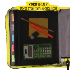 - Dimensions: 12.5″H x 2.5″W x 12.75″D. Expansion panel on the outside of the binder allows you to store and access textbooks, notebooks, and more without unzipping the binder.