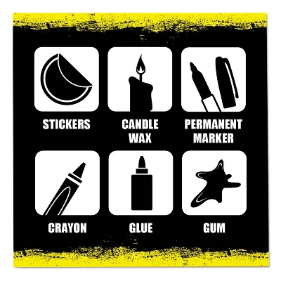 - Removes chewing gum, grease, tar, stickers, labels, tape residue, oil, blood, lipstick, mascara, shoe polish, crayon and bumper stickers. Cleaning pen is spillproof and unbreakable.