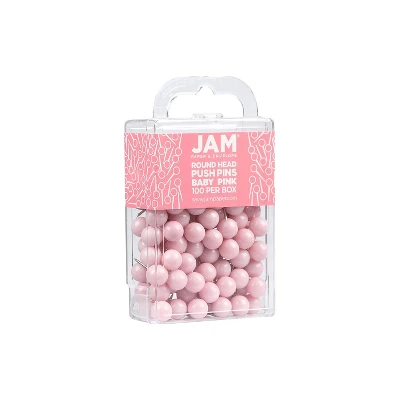 Push aside that tape and those staples and choose Push Pins! Your board needs some color. The best way to do this is with something that will not only make your papers stay on, but also brighten up the office space. Keep organized in the most creative and fun way possible. Sold in packs of 100, these vibrant, pristine thumbtacks are essential to anything worth posting. Colored decorative push pins make for a great way to add some style to the board and additional color to whatever you may be pinning. Choose orange for Halloween bulletins, or Baby Blue and Baby Pink for Baby Shower flyers, even Red and Green for Christmas party flyers. JAM Push Pins are available in Blue, Baby Blue, Green, Lime Green, Yellow, Fuchsia, Light Purple, Purple, Red, Black, Chocolate Brown, Orange, Baby Pink, Teal, Silver, Gold, Rose Gold, and White. We even have clear push pins! Round-top Push Pins are available in Silver Gold. Plastic Head Thumb Tacks | Color: Light Baby Pink / Light Pink. Size: Standard (approx. 1 inch) | Steel tipped – perfect for pinning maps and calendars. Quantity: 100 Push Pins | Durable and reusable thumbtacks designed for a long lasting, strong hold. Used to pin important papers or pictures to Bulletin Boards, Cork Boards, Calendars, and Walls. Keep your school work, office work, art and visual projects organized with colored push pins!. Thumb tacks. Sold as 1 Each.