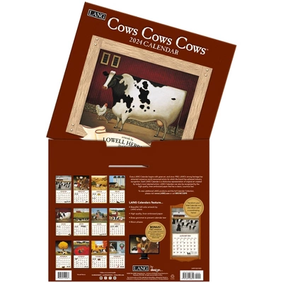The Cows Cows Cows 2024 Wall Calendar features stunning artwork by Lowell Herrero of adorable cows in various settings every month. LANG Wall Calendars feature monthly full color images, elegant linen embossed paper stock, and a brass grommet for hanging. Desktop wallpaper download available.