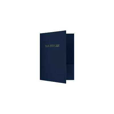 LUX 9″ x 12″ Presentation Folders- Standard Two Pocket w/ Gold Foil Tax Return in Dark Blue Linen are perfect for Hotel Welcome Baskets, Wedding Programs, Seminars, Brochures and so much more! 9 x 12 Presentation Folders w/ Gold Foil Tax Return in Dark Blue Linen with a standard two pocket design are perfect for holding standard letter size 8 1/2″ x 11″ paper, documents, print media, brochures, stepped inserts and other professional uses. These folders feature a gold foil stamped design on the front cover which reads, “Tax Return”. The two interior pockets measure 4″ in height and the right pocket features card slits to securely hold and display standard size business cards (3 1/2″ x 2″). Both pockets are also die-cut in a v-split style to prevent buckling when opening and closing the covers. This folder is created from thick, durable 100lb. cover stock in a deep blue color with a high-quality linen texture. The square corners of this standard size presentation folder were expertly die-cut for a clean, professional look. Color: Blue Linen is a classic, dark blue color with a high-quality linen texture on thick, durable 100lb cover stock. Made from: 100lb. Cover Stock. Dimensions: 9″ W x 12″ L. Features: Two Interior Pockets, 1 Card Slit. Pack of 50 Folders. Uses: Standard Size Papers, Documents, Sales Materials, Brochures, Programs, Business Cards and more. Printable. Two Pockets, Business Card Slots.