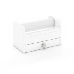 Comprised of unique storage solutions, functional work spaces and special places to curate and display children’s art, the Martha Stewart Crafting Kids’ Collection by Guidecraft inspires a child’s artistic expression. Innovative designs along with quality pieces, together establish a comprehensive, child-centered space to create using a variety of media. The Kids’ Tape Roll Dispenser is designed to keep tape rolls and necessary accessories organized and accessible. Easily trim tape rolls to desired lengths using the ridged edge. Unit stores multiple rolls at one time and features a storage drawer for scissors, extra tape or other art supplies.