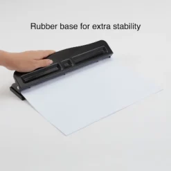 - Easy-to-use desktop two-hole punch delivers perfectly placed hole punches every time. Punch heads deliver clean punching of 28 sheets of paper at a time. The punch heads are a standard holes with 0.28″ width. Features a black design for a professional look. Durable steel construction ensures long-lasting performance. Adjustable chrome-plated paper guide. Includes chip tray.
