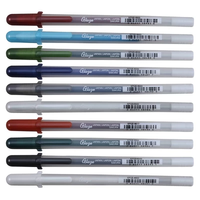 Gelly Roll Glaze Pens by Sakura empower you to emboss with ease! Simply write or draw slowly with these unique pens and then let your designs and words dry. That’s it! The glaze formula creates beautiful raised lines and glossy lettering without heat or messy powders. Add a tactile sensation and professional appearance to wedding invitations, gift cards, handmade stationery, and more. Create true writing you can feel with vivid ink colors that are water resistant and do not bleed through most papers and vellum. Glaze ink clings to most non-porous materials such as CDs. Available in an assorted set of 10 or 16.