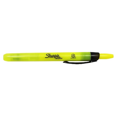 Forget about a cap–just click and highlight! Featuring a convenient design for one-handed operation with no cap to remove or lose, Sharpie Retractable highlighters make it easy to add high visibility to high priority ideas. The highlighters are filled with vivid, high-contrast colors and they have a Safety Seal valve design that helps prevent the ink from drying out. Sold as a pack of 12 highlighters. CONVENIENTLY RETRACTABLE: Easy push button for one-handed highlighting. HIGH ON COLOR: Vivid, high-contrast colors add stark emphasis to highlighted text. LIGHT ON THE EYES: Transparent ink makes highlights easy to read. CONTAINS SMEARGUARD ink technology to resist smearing of most inks (let ink dry before highlighting). MULTI PACK: Sold as a pack of 12. Keep one in your bag, at home, in your desk, or have some to share. Pack of 12 Highlighters. Sold as 12 BD.