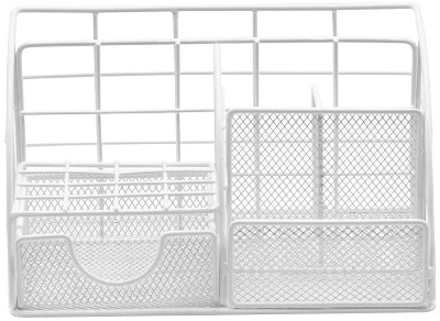 - STYLISH DESIGN — Fits most styles — Made of iron wire and mesh with rounded corners — Cute desk organizer décor or gift for busy professionals, bloggers, students, teachers, and more — No assembly required — Office Supplies NOT INCLUDED — Measures approximately 8.62” L x 5.50” W x 5” H
