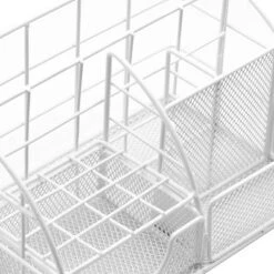 Start and end your workday like a boss! From corralling incoming mail to storing supplies, the Sorbus Desk Organizer Caddy is your personal command center. It features a stylish all-in-one display with five divided sections and pull-out drawer. The wire mesh helps you see contents at a glance so you can spend more time on important tasks instead of searching through messy drawers. Organize anything from letters and writing tools to paper clips and post-it notes. Most of all, enjoy a clutter-free workstation. Enjoy a versatile desk organizer for any task. Dress your desk for success around the home or office. Organize bills and mail using the letter holder. Quickly jot your to-do lists with pens, pencils, and highlighters directly from the vertical slots. Keep phone messages, post-it notes, and memos in place inside the sticky note compartment. The pull-out drawer makes the perfect spot to tuck away or grab staples, binder clips, and other small items. With all your essentials neatly arranged, you can be sure that you will always have a pen and paper ready for those important meeting notes! The sleek aesthetic fits most office décor and yes, it’s versatile for equally busy areas of the home like the kitchen counter or entryway console. Compact and stylish design. The compact design with five divided sections and drawer takes up minimal space on your desktop. No assembly required. Made of durable iron wire mesh with rounded corners. Office Supplies NOT INCLUDED. Makes a great gift. Measures approximately 8.62 inch L x 5.50 inch W x 5 inch H.