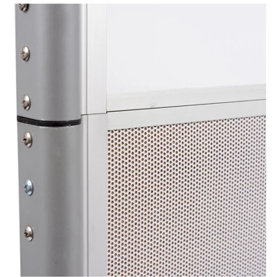 The Stand Up Desk Store Mobile Combo Magnetic Whiteboard/Tackboard/Room Divider is an incredibly versatile addition to an office or classroom environment. Depending on how you choose to use it, this double-sided dry erase board/corkboard can create privacy and separation between work stations, display notes and other paper documents, and/or serve as a presentation and collaboration tool for meetings and lessons with smaller groups. Highlights of this whiteboard partition include a 33.5″ x 30.25″ double-sided magnetic dry-erase whiteboard surface that resists stains and ghosting and is easy to clean with a 70% alcohol solution. Beneath is a 33.5″ x 28.9″ double-sided tackboard surface with a perforated magnetic cover. Lockable 2″ casters make it easy to roll the divider from room to room. The aluminum inner frame mated to a powder-coated steel outer frame and base to ensure strength and durability. Overall dimensions are 38″ W x 24″ D x 70″ H. Easy assembly. 5-year limited warranty against defects. Stand Up Desk Store is based in the suburbs of Chicago.