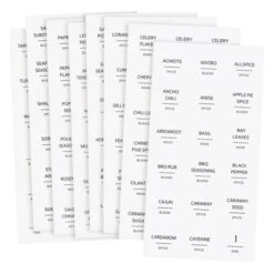 - Home Organization Spice Stickers Labels: Create a personal organization system for your pantry, spices, laundry room, storage, bathroom, linen closet, bathroom master closet, cleaning supplies, office, crafts, playroom, master closet, clothing, and shoes