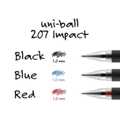 Enjoy rich, vivid color with this 12-pack of uni-ball 207 Impact bold-point blue gel pens. Keep these uni-ball Impact gel pens close at hand for signing documents or grading papers. The multipack of pens come with caps to prevent unwanted marks when not in use, and the easy-to-hold shape, plastic clip and stylish barrel work together to provide a high-quality writing experience. These uni-ball Impact gel pens have a bold point so their lines are smooth and unbroken. Gel ink pens for any task. Blue ink is easy to read. Bold 1.0mm point provides easy readability. Gray/silver barrel. 12 pens per pack. Comfort grip for superior control. Features a pocket clip for convenient carrying. Refillable ink allows pens to be reused instead of being replaced to save money. Water-proof ink formula. Acid-free ink for archival quality. Sold as 1 Dozen.