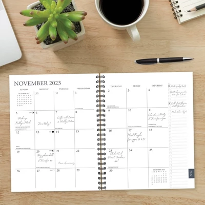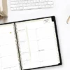 This 6.5” x 8.5” softcover Academic weekly planner combines fashion with fun, functional features that are ideal for laying out the year ahead. In addition to monthly snapshots and two-page weekly spreads that provide ample space for detailed planning, there are also sections for weekly shopping lists, goals, and a habit tracker. Printed with soy-based inks on high-quality FSC certified paper, this planner includes a spiral binding, monthly faux tabs which make accessing information a breeze, and over 300 stickers to dress up special days like birthdays and other upcoming events on your social calendar. Protected by a durable, plastic-free cover, this planner also includes a handy storage pocket offering a secure space for papers, receipts, and other important items. Date Range: July 2023 – June 2024.